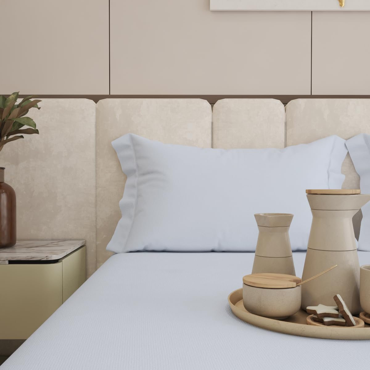 Indulge in unparalleled comfort and luxury with the Living Leisure 600 Thread Count 100% Cotton Bedsheet Set. Woven from premium 100% cotton with a luxurious 600 thread count, this bedsheet offers an exceptionally soft, smooth, and breathable feel for a truly restful night's sleep. This complete set includes one perfectly sized bedsheet, ensuring a beautiful drape and fit on your mattress. Complementing the bedsheet are two matching pillow covers (46 x 69 cm), creating a cohesive and sophisticated look for your bedding. Experience the difference that a high thread count makes. The 600 TC construction of this Living Leisure bedsheet provides a silky soft touch that feels wonderful against your skin. Made from durable and breathable 100% cotton, this set is designed for long-lasting comfort and easy care – simply machine wash and tumble dry. Upgrade your sleep sanctuary with the Living Leisure 600 Thread Count Bedsheet Set. Enjoy the perfect blend of premium quality, exceptional softness, and elegant design. Treat yourself to the ultimate in comfort with Living Leisure.